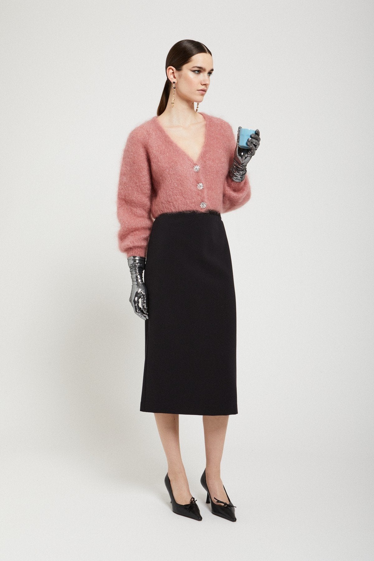 Ottod’Ame – Luxuriously soft and sparkling, this mohair-blend fluffy cardigan features jewel buttons and subtle lurex for an elegant, statement-making touch. Perfect for adding refined glamour to any outfit.