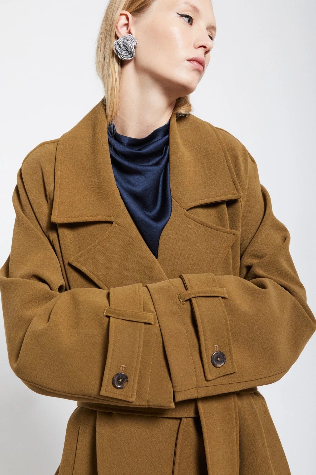 Ottod’Ame – Timeless and elegant, this viscose blend double-breasted trench features a flattering sash for a polished silhouette. A sophisticated outerwear piece that effortlessly elevates any look.