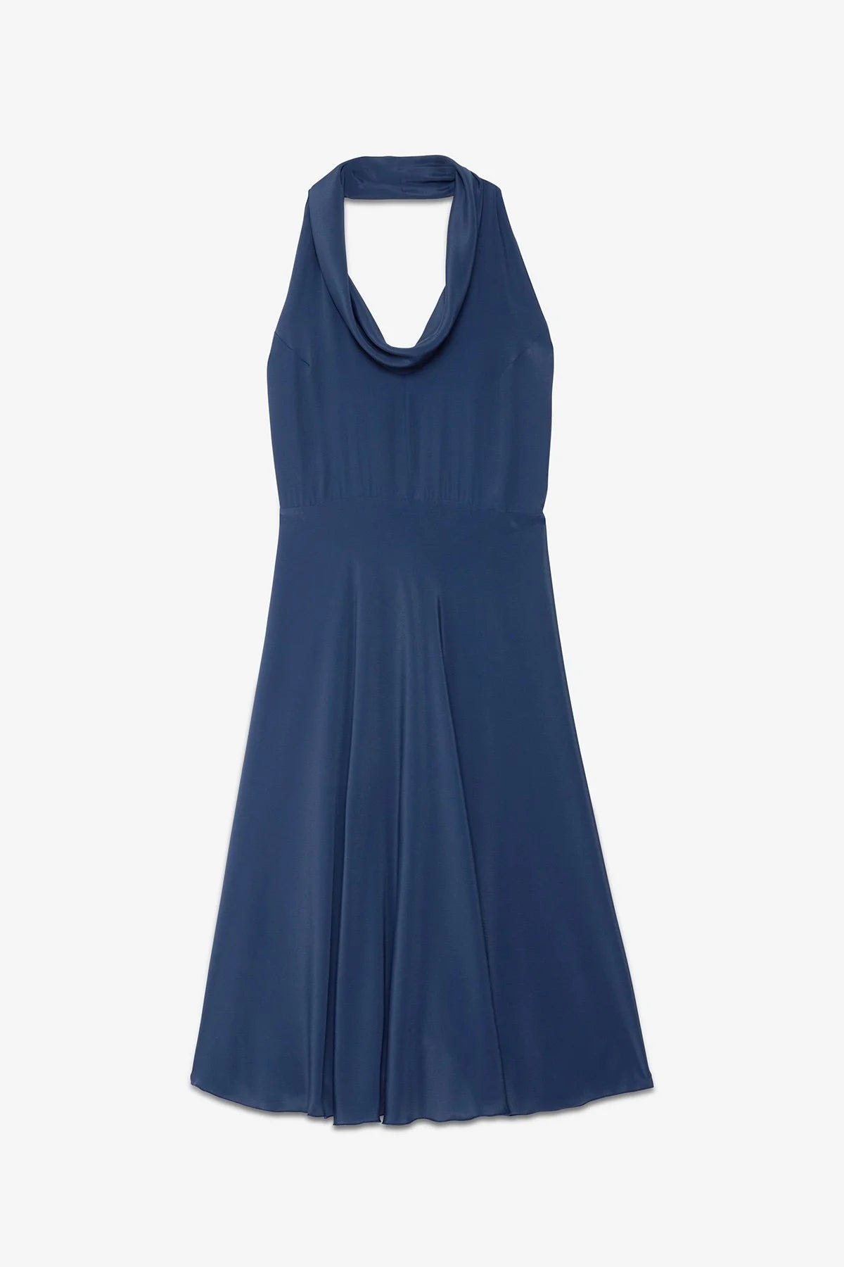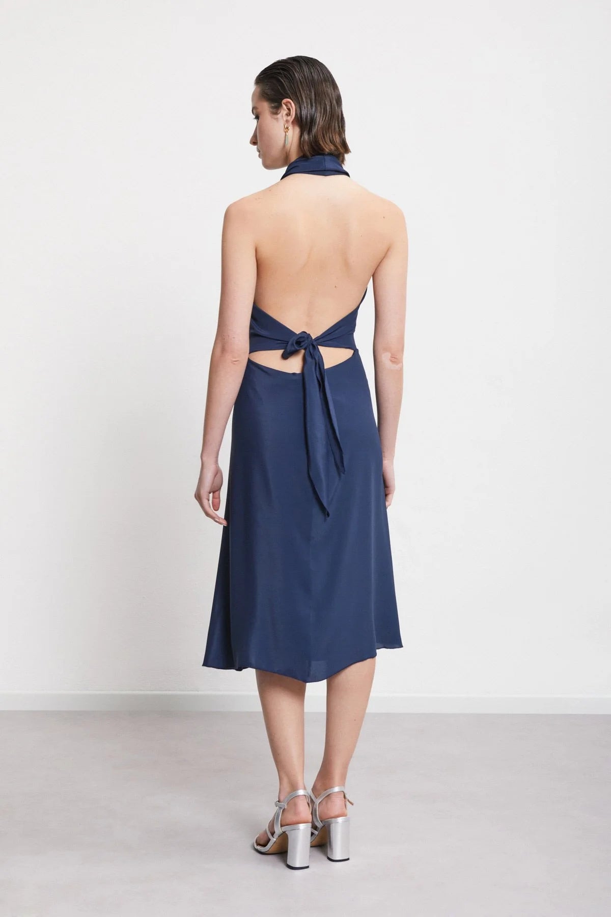 Ottod'Ame - An elegant halter-neck dress crafted in fluid silk, designed to drape effortlessly over the body. Featuring a softly draped neckline and an open back with tie detail, this silhouette moves with grace and understated sensuality. A timeless piece for evening occasions, summer events, or refined celebrations.