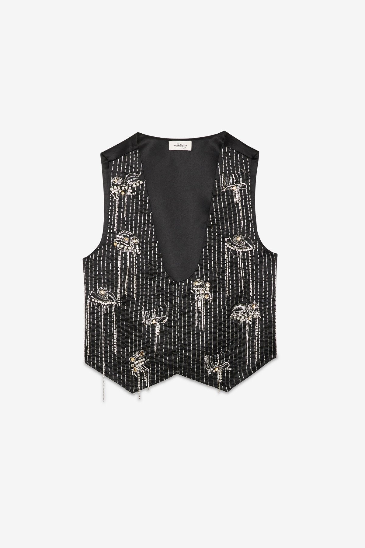Ottod'Ame - A radiant essential — pure cotton vest adorned with shimmering stone and crystal embroidery for a touch of effortless glamour. Soft, elegant, and perfect for adding sparkle to your everyday or evening look.